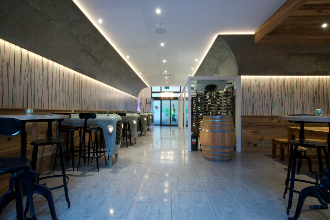 Ces photos illustrent des réalisations uniques, pensées à chaque fois en accord avec les envies et la personnalité de mes clients, que j’accompagne toujours un peu plus loin dans leur vision. Intérieurs, ambiance montagne Bar à vin restaurant Cuisines Europ Hotel Zermatt